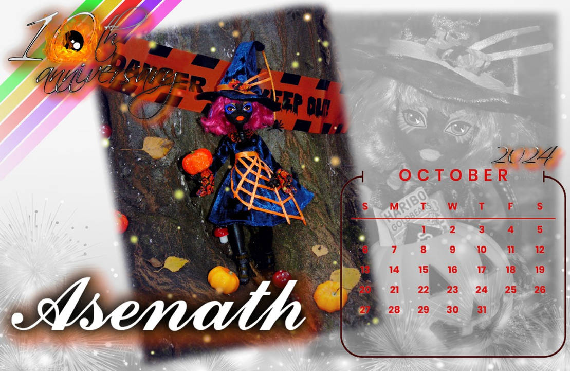 A msodik vagyis a kzeli fot, mr hamarabb elkszlt, mert cuki lett! Mr az els belltsnl lttam, hogy sokkal szebben s tisztbban is sikerlt. Csak simn leltettem Asenathot a fnl s az lbe adtam egy j nagy tklmps "kosarat" tele dessggel :D Persze csak nhny darab kandikl ki a tetejn, de gy kell kpzelni, hogy tele van na :3 Elkpzelem, hogy sikeresen teletmte mindenfle finomsggal "trick-or-treat"-els kzben! Ezzel a kppel is volt azrt egy kis munka, mert javtanom kellett a vaku visszacsillanst a szemekbl, meg tsznezni megint a sminket is. Mskpp csak egy kis szn s extra keret szerkeszts van rajta, amitl rgiesnek tnik a fot. Nekem bejn, jl nz ki!